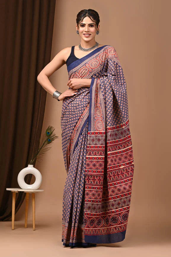 Bouquet Bagru Print Cotton Saree For Women