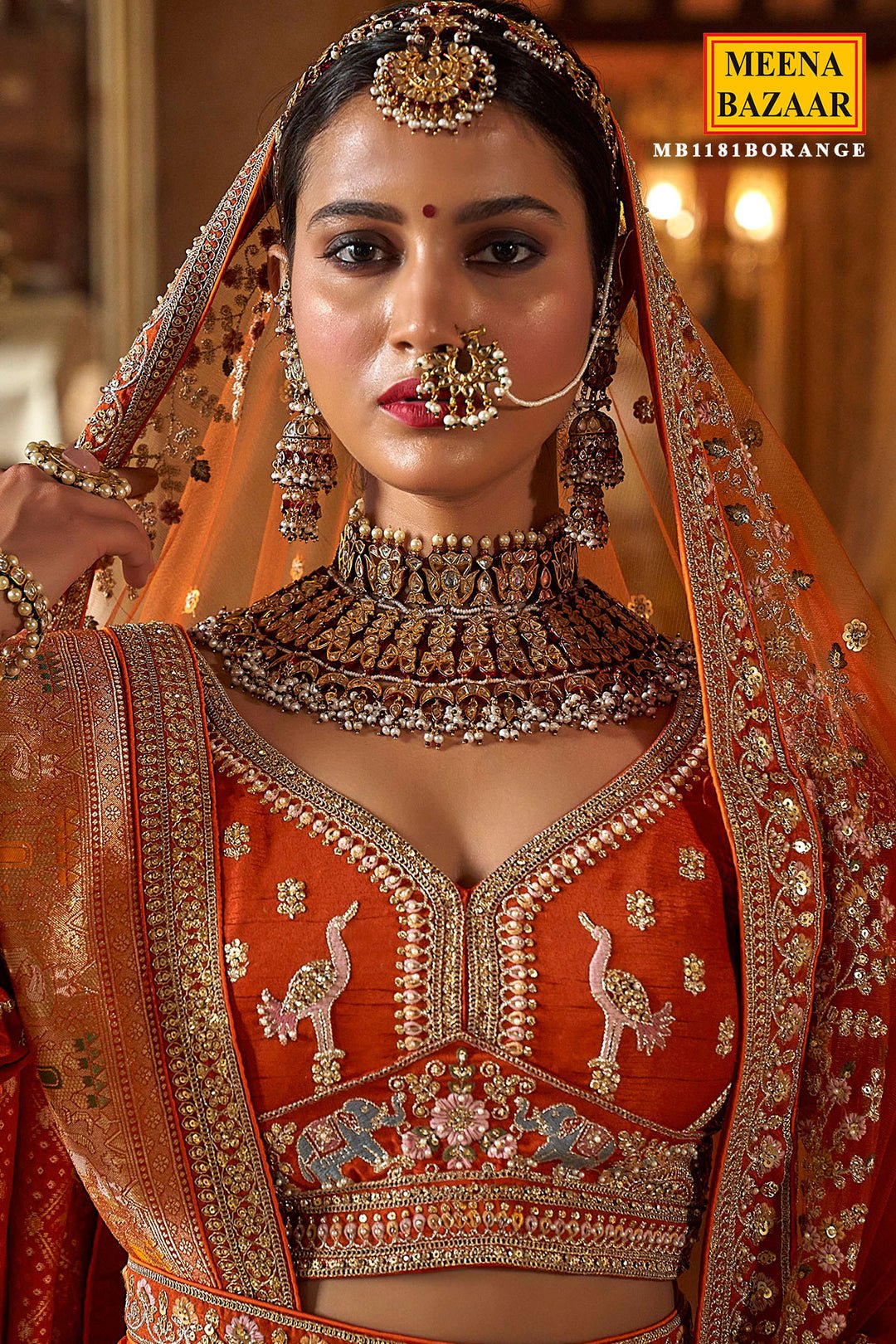 Orange Silk Zari And Sequin Embroidered Bridal Lehenga – Royal Wedding Ensemble