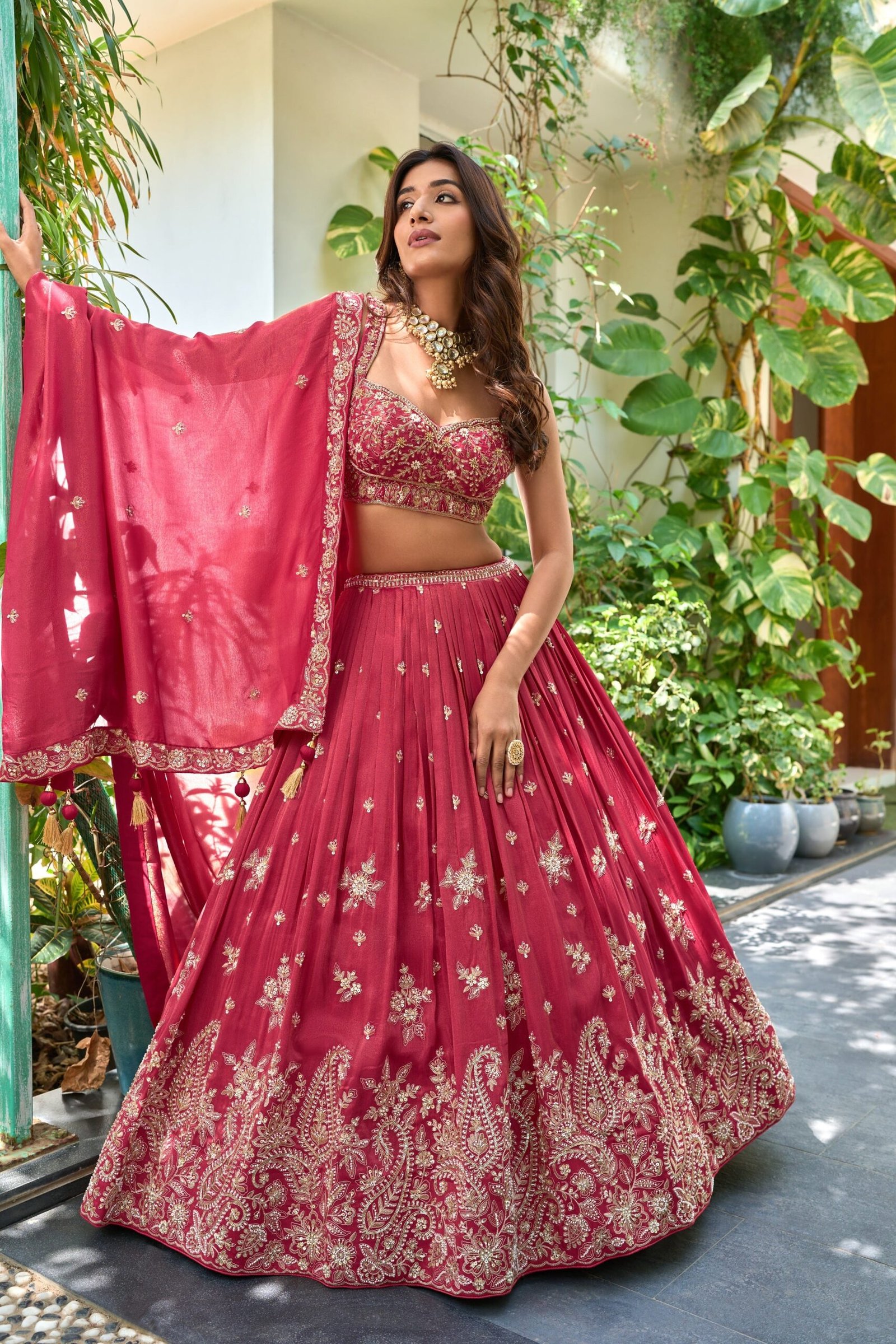 Rosewood Zardosi Embroidered Tissue Lehenga Set