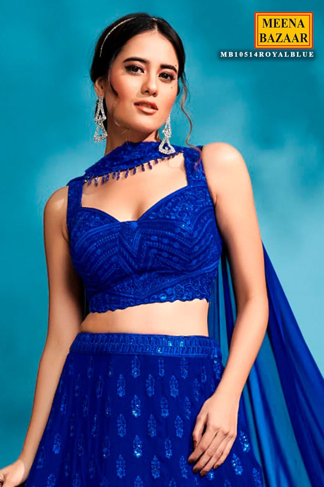Royal Blue Georgette Embroidered Lehenga Elegant Wedding & Festive Wear